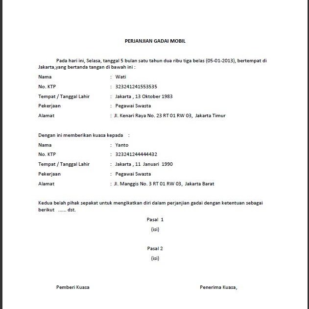 for "Surat Kuasa Penjualan Mobil / Prigel Andaniza Azhar: Contoh Surat Perjanjian Jual Beli"