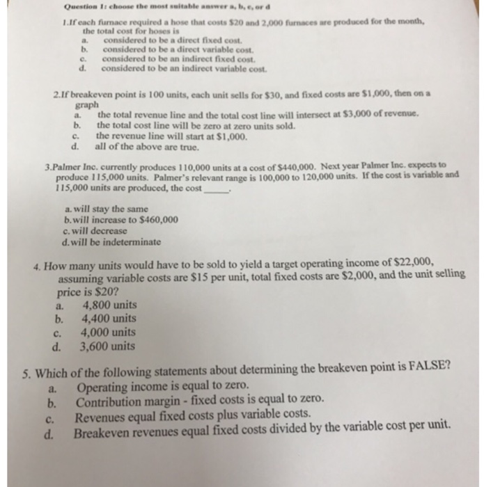 Accounting Archive | July 10, 2017 | Chegg.com from media.cheggcdn.com You'll find out who is most likely to be easily embarrassed. Introduction to fixed and variable costs. By comparing marginal revenue and marginal cost, a firm in a competitive market is able to adjust production to the level that achieves its objective, which we assume to be. Hobbes in the short runto: Many scouting web questions are common questions that are typically seen in the classroom, for homework or on quizzes and tests. However, the benefits of becoming bigger can mean a fall in the average cost of making one item. This is a variable cost. Fixed costs (aka fixed expenses or overhead).